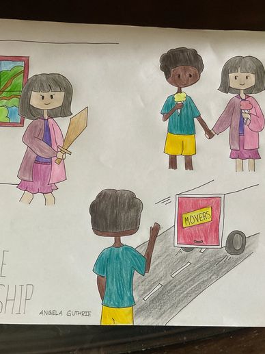 Every day they meet in the treehouse. Ann pretends to be a dragon-slayer. Ben writes her poetry. They stroll hand in hand, eating cherry and lemon snow cones. His tear-filled eyes blinds him as he waves goodbye to the moving van. The two of them promise to write every week.